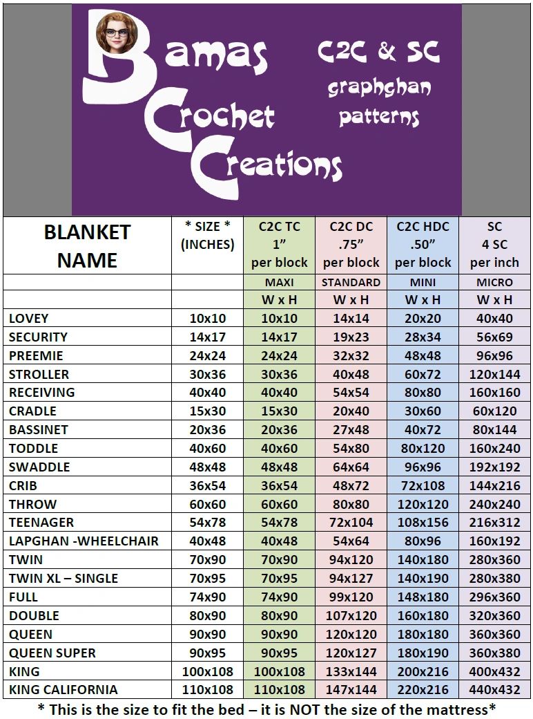 For those of you who think that you HAVE to buy a pattern that has a bottom left start, you don't have to. C2C is done on alternating sides. Just like doing a SC project. You are flipping the project every row, so it really doesn't matter how the pattern is written or what hand you use to crochet your project. I had some testers do the same project. Some were left handed and some right handed and the results were the same. It doesn't change the appearance of the graphghan at all. As long as you follow the pattern you will have a perfect finished project.